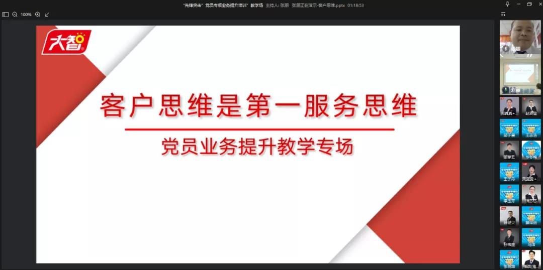 為充分發(fā)揮黨員先鋒模范帶頭作用,全面調(diào)動黨員的積極性和創(chuàng)造性,5月19日至20日,大智教育集團黨委在集團總部組織開展了“先鋒突擊”黨員專項業(yè)務提升培訓,共分為教學顧問專場和學習顧問、市場專員專場。集團總部和濟南區(qū)域現(xiàn)場參加,外地區(qū)域視頻連線參加。