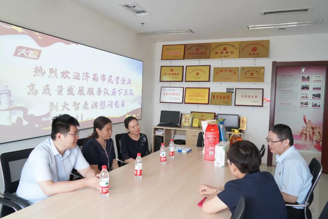 7月1日,濟(jì)南市民營(yíng)企業(yè)高質(zhì)量發(fā)展服務(wù)隊(duì)到大智慰問(wèn)光榮在崗老黨員。大智教育集團(tuán)黨委書記王現(xiàn)芹熱情接待。