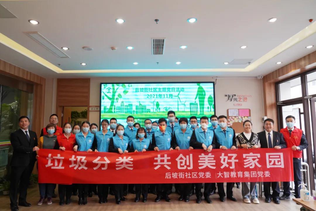 為提高黨員群眾環(huán)保意識(shí),持續(xù)鞏固提升城市文明水平,11月5日,大智教育集團(tuán)黨委聯(lián)合濟(jì)南市歷下區(qū)解放路街道后坡街社區(qū)黨委開(kāi)展“垃圾分類 我?guī)ь^我承諾”主題黨日。