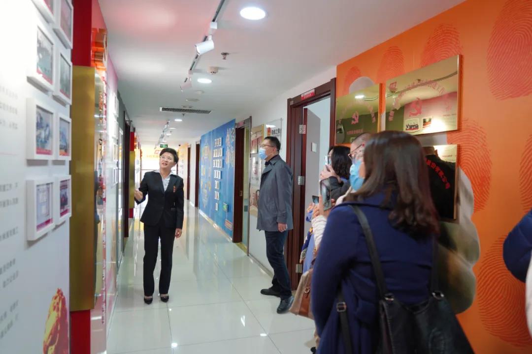 首先,王現(xiàn)芹帶領(lǐng)大家參觀了黨建長廊,詳細介紹了大智組織架構(gòu)、企業(yè)文化等相關(guān)情況,以及“智惠黨建一三九”黨建工作模式,黨建引領(lǐng)下的“一帶一促”群團建設(shè)理念和“智惠+”群團建設(shè)模式。大家對大智的黨建工作給予了高度評價。