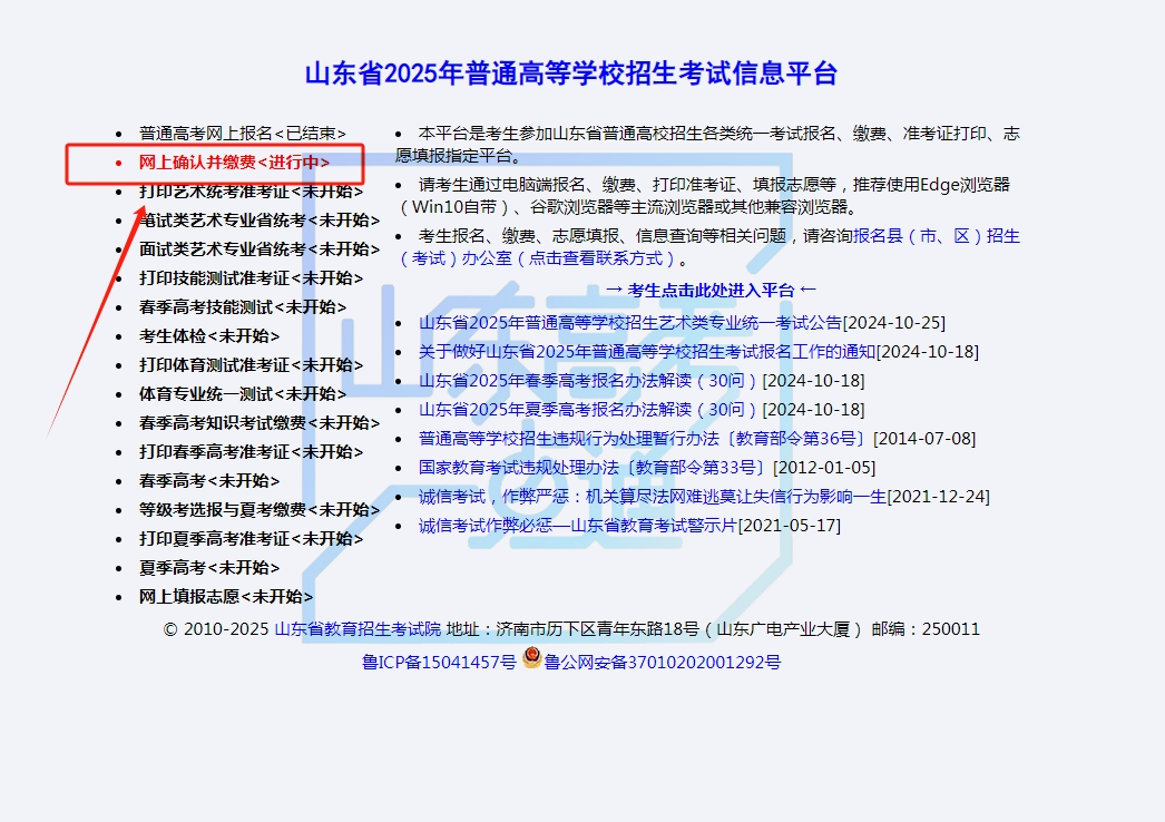 2025高考報(bào)名繳費(fèi)工作11月12日至16日(每天9:00-18:00)進(jìn)行。提醒還未繳納高考報(bào)名費(fèi)的考生,及時(shí)登錄山東省教育招生考試院官網(wǎng)(http://wsbm.sdzk.cn)完成繳費(fèi)工作。