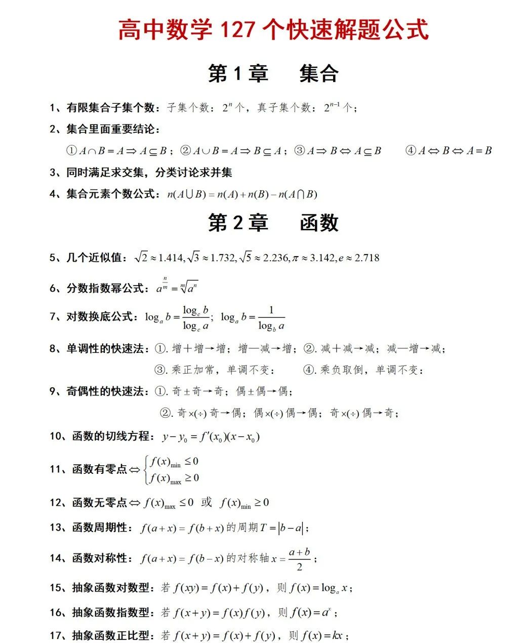 高中數(shù)學(xué)127個(gè)快速解題公式