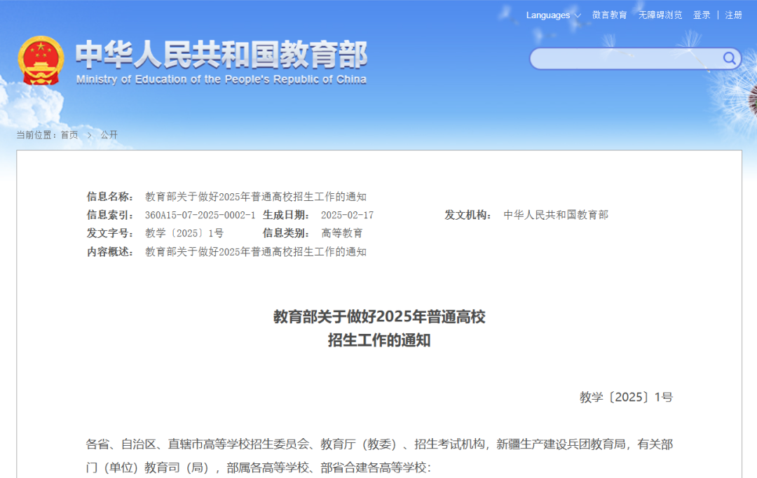 此前,教育部發(fā)布了《教育部關(guān)于做好2025年普通高校招生工作的通知》(點(diǎn)擊查看),其中提到了2025年全國高考統(tǒng)一考試時(shí)間安排。同時(shí)公布了《...