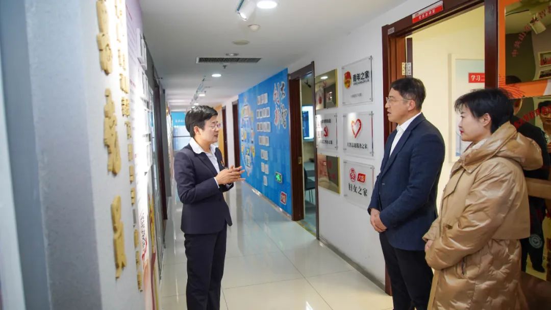王現(xiàn)芹帶領(lǐng)大家參觀了黨建長(zhǎng)廊,詳細(xì)介紹了大智黨委組織架構(gòu)、企業(yè)文化等相關(guān)情況,以及“智惠黨建一三九”黨建工作模式,黨建引領(lǐng)下的“一帶一促”群團(tuán)建設(shè)理念和“智惠+”群團(tuán)建設(shè)模式。