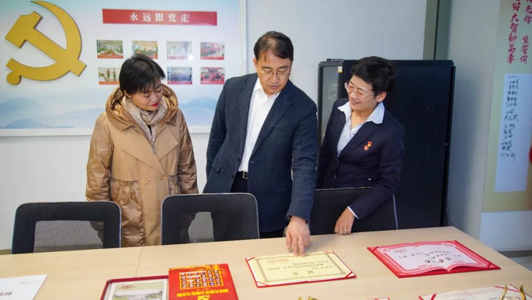 參觀黨員活動(dòng)室,翻閱查看大智黨建相關(guān)資料。