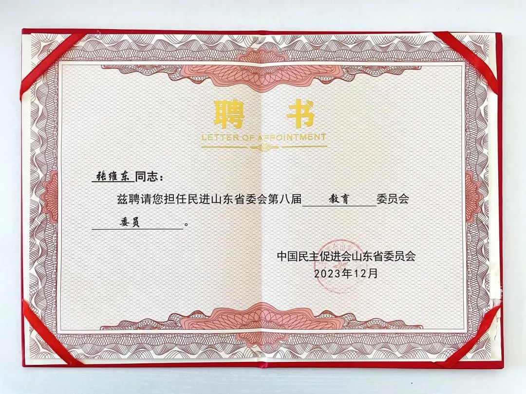張維東被民進(jìn)山東省委教育委員會聘為委員