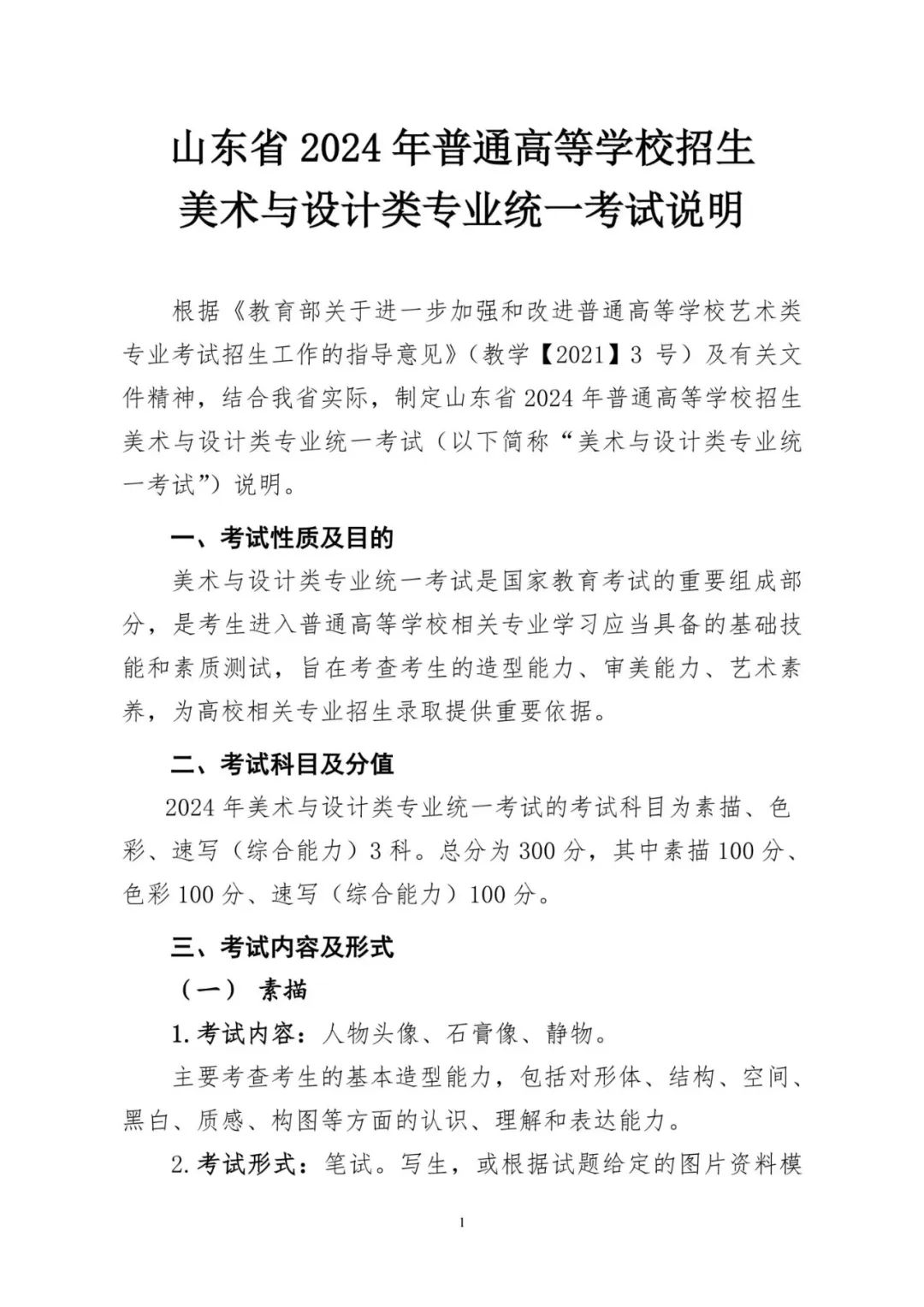 美術(shù)與設(shè)計類專業(yè)統(tǒng)考包括素描、色彩、速寫(綜合能力)三個科目,每科目分值均為100分,總分為300分。