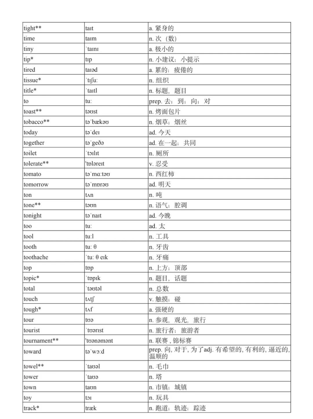 本詞匯表不列可根據(jù)構(gòu)詞法推導(dǎo)出的部分名詞、形容詞、副詞等。