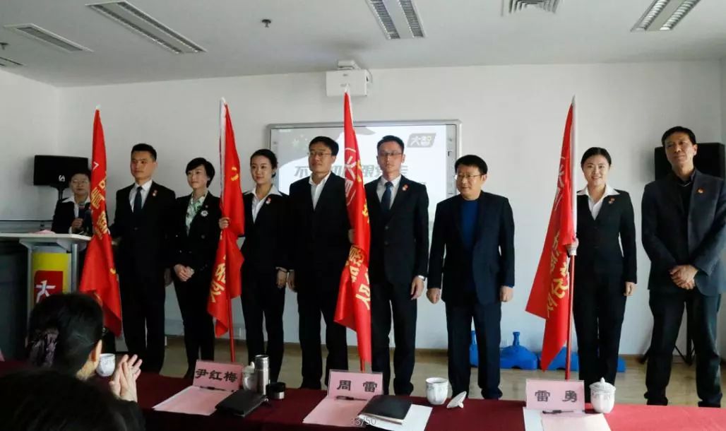 共青團(tuán)濟(jì)南市委副書記王友進(jìn),共青團(tuán)濟(jì)南市委組織部部長(zhǎng)雷勇、中共濟(jì)南市歷下區(qū)委常委周雷、共青團(tuán)歷下區(qū)委副書記杜慶姝為“大智青年志愿服務(wù)隊(duì)”授旗。