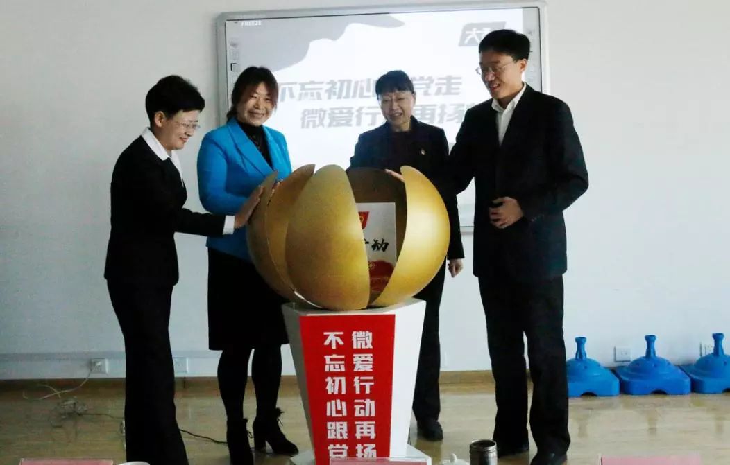 中共濟(jì)南市歷下區(qū)委副書記尹紅梅、共青團(tuán)濟(jì)南市委副書記王友進(jìn)、解放路黨工委書記仵愛之、大智控股集團(tuán)黨委書記、副總裁、好媽媽俱樂部主席王現(xiàn)芹共同按動(dòng)“微愛行動(dòng)”啟動(dòng)球,新一年度“微愛行動(dòng)”正式啟動(dòng)!
