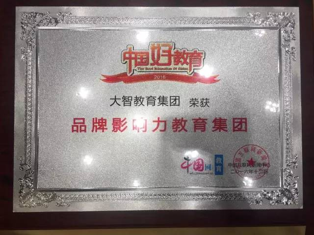 大智剛剛榮獲“德耀齊魯”道德示范基地,榮譽又接踵而至,12月12日,在由中國互聯(lián)網(wǎng)新聞中心(中國網(wǎng))主辦的2016年中國教育家年會暨中國好教育盛典活動上,大智榮膺 “中國好教育-2016年度品牌影響力教育集團”。此次評選以“‘三傳四引’問道教育改革”為主題,大智以其優(yōu)質(zhì)的教學服務、優(yōu)異的辦學成績以及良好的社會口碑,在眾多同類教育培訓品牌中脫穎而出,贏得大獎。