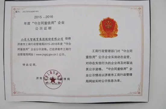 日前,山東省濟(jì)南市工商行政管理局公布2015~2016年度“守合同 重信用”名單, 大智憑借良好的口碑與信譽(yù), 喜獲“守合同重信用” 企業(yè)這一榮譽(yù)。