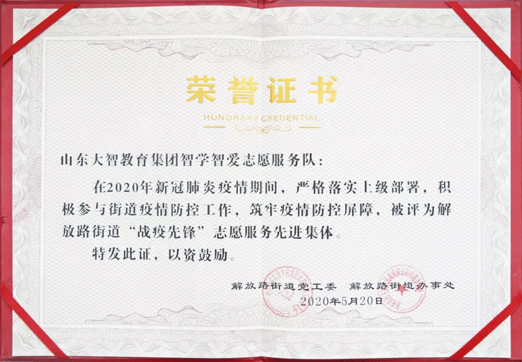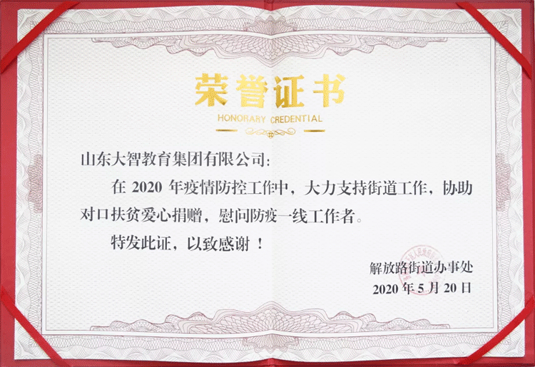戰(zhàn)疫不忘扶貧,活動(dòng)現(xiàn)場(chǎng),大智向解放路街道辦事處及街道對(duì)口支援扶貧縣城捐贈(zèng)價(jià)值393800元公益課程,街道辦事處現(xiàn)場(chǎng)為大智頒發(fā)榮譽(yù)證書,對(duì)大智表示感謝。