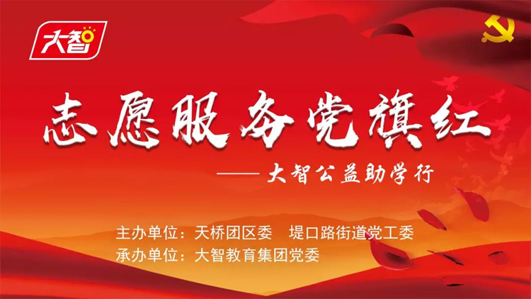 為充分發(fā)揮教育資源優(yōu)勢,立足公益回饋社會。04月17日,大智控股集團(tuán)黨委聯(lián)合濟(jì)南市天橋團(tuán)區(qū)委、天橋區(qū)堤口路街道黨工委舉辦了“志愿服務(wù)黨旗紅—...