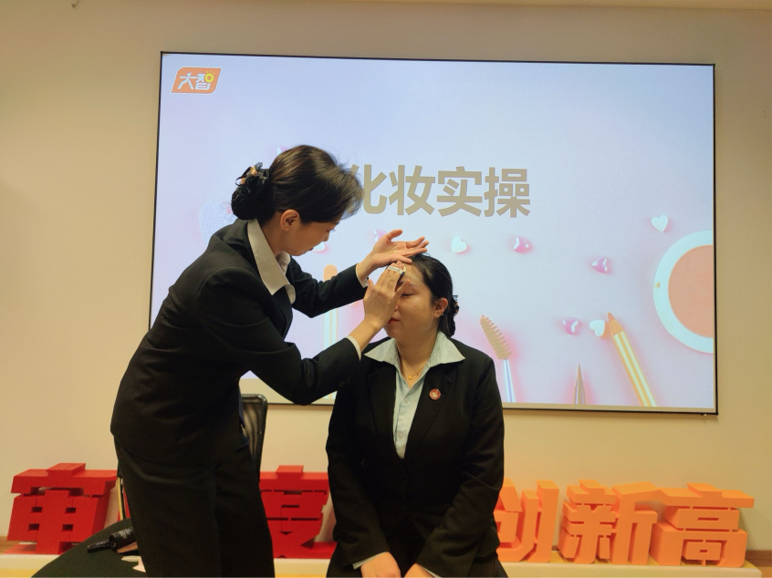 大智控股集團(tuán)市場(chǎng)部總監(jiān)陳婷婷針對(duì)學(xué)科導(dǎo)師的職業(yè)特性,傳授了快速高效的日常妝容打造技巧,包括底妝選擇、眼妝自然提亮、唇色搭配等實(shí)用知識(shí)。婷婷總監(jiān)提到:“化妝不僅是外在美的提升,更是對(duì)自我和他人的尊重。作為學(xué)科導(dǎo)師,妝容應(yīng)簡(jiǎn)潔大方,既展示專業(yè)性,又拉近與學(xué)生的距離?!辈F(xiàn)場(chǎng)進(jìn)行化妝實(shí)操。