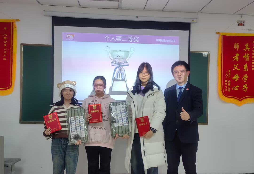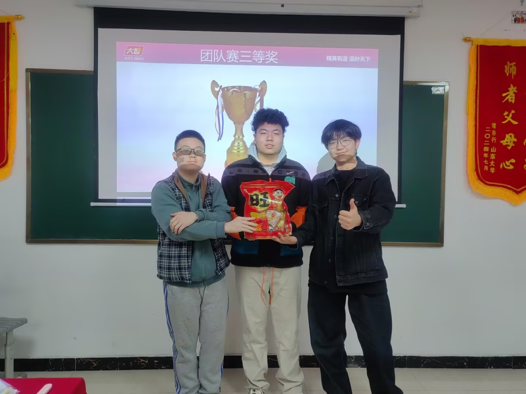 本屆“詞王爭霸賽聯(lián)賽”比賽過程緊張激烈,熱鬧非凡。個(gè)人賽有三關(guān),分別是“詞匯大風(fēng)車,我來搶答之自由詞匯和我來搶答之場景主題詞匯”三部分,考查學(xué)生們的詞匯熟練度,發(fā)音精準(zhǔn)度,用主題語境方法積累詞匯。團(tuán)隊(duì)賽有四關(guān),分別是“快速識(shí)詞、你劃我猜、合力拼詞和連詞造句”四部分,考查學(xué)生用正確運(yùn)用構(gòu)詞法積累詞匯,正確運(yùn)用詞匯表達(dá)觀點(diǎn)以及團(tuán)隊(duì)凝聚力。參賽選手們充分展示出了自身實(shí)力,團(tuán)隊(duì)凝聚力,積極活躍參與本次大賽,展示出來了英語的樂趣和魅力。經(jīng)過激烈角逐,9位選手分別榮獲本次個(gè)人賽一等獎(jiǎng)、二等獎(jiǎng)和三等獎(jiǎng)榮譽(yù)證書以及獎(jiǎng)品,三個(gè)團(tuán)隊(duì)分別獲得團(tuán)隊(duì)賽一等獎(jiǎng)、二等獎(jiǎng)和三等獎(jiǎng)的榮譽(yù)以及獎(jiǎng)品!
