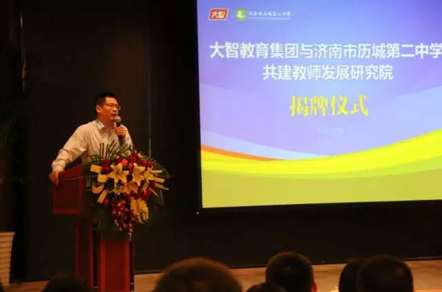 9月30日,民辦教育培訓機構(gòu)大智與濟南市歷城第二中學在山東新聞大廈舉辦“聯(lián)合共建教師發(fā)展研究院”揭牌儀式。儀式上,濟南市教育局成人教育處處長于春祥與濟南市歷城第二中學校長李新生共同為教師發(fā)展研究院揭牌,并現(xiàn)場接受了媒體采訪。至此,由大智和歷城二中聯(lián)合創(chuàng)建的“教師發(fā)展研究院”正式成立了。
