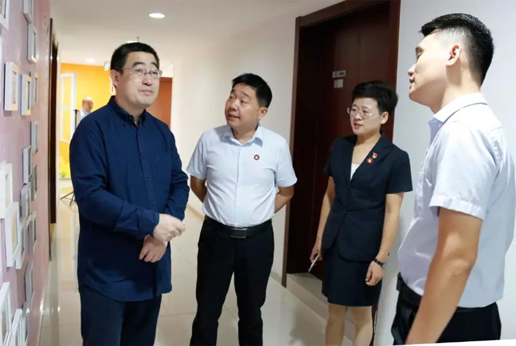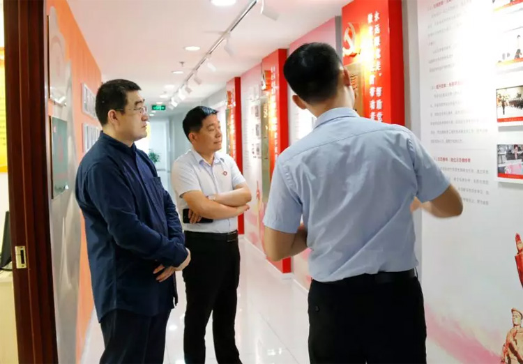 在大智控股集團黨委書記王現芹,大智控股集團創(chuàng)始人、董事長張維東的陪同下,王文博參觀了大智控股集團總部,詳細了解了大智的發(fā)展、師訓、黨建等方面工作情況。