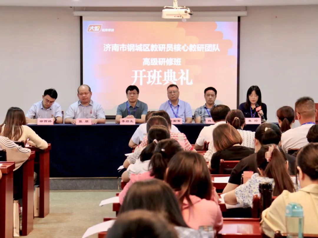 8月8日上午,濟南市鋼城區(qū)教研員核心教研團隊高級研修班開班典禮在海龍生態(tài)產(chǎn)業(yè)園世紀廳會議室成功舉辦。鋼城區(qū)教體局黨組成員副處級領(lǐng)導干部李巖生,鋼城區(qū)教體局教師辦主任徐勤富,鋼城區(qū)教研室負責人魏述省主任、秦玲主任,大智銘師負責人張朋,大智銘師項目負責人徐西路參加典禮,大智銘師賈琦擔任主持人。