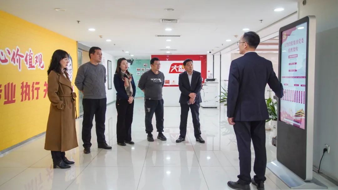 12月29日,濟南市工商聯(lián)企業(yè)家協(xié)會秘書長王寶嶺,濟南農(nóng)商行槐蔭支行長陳亭,浪潮愛購云鏈副總經(jīng)理歷承亮等一行到大智控股集團總部參觀交流,大智控股集團創(chuàng)始人、董事長張維東,大智黨委委員、行政負責人昌舉岡熱情接待。