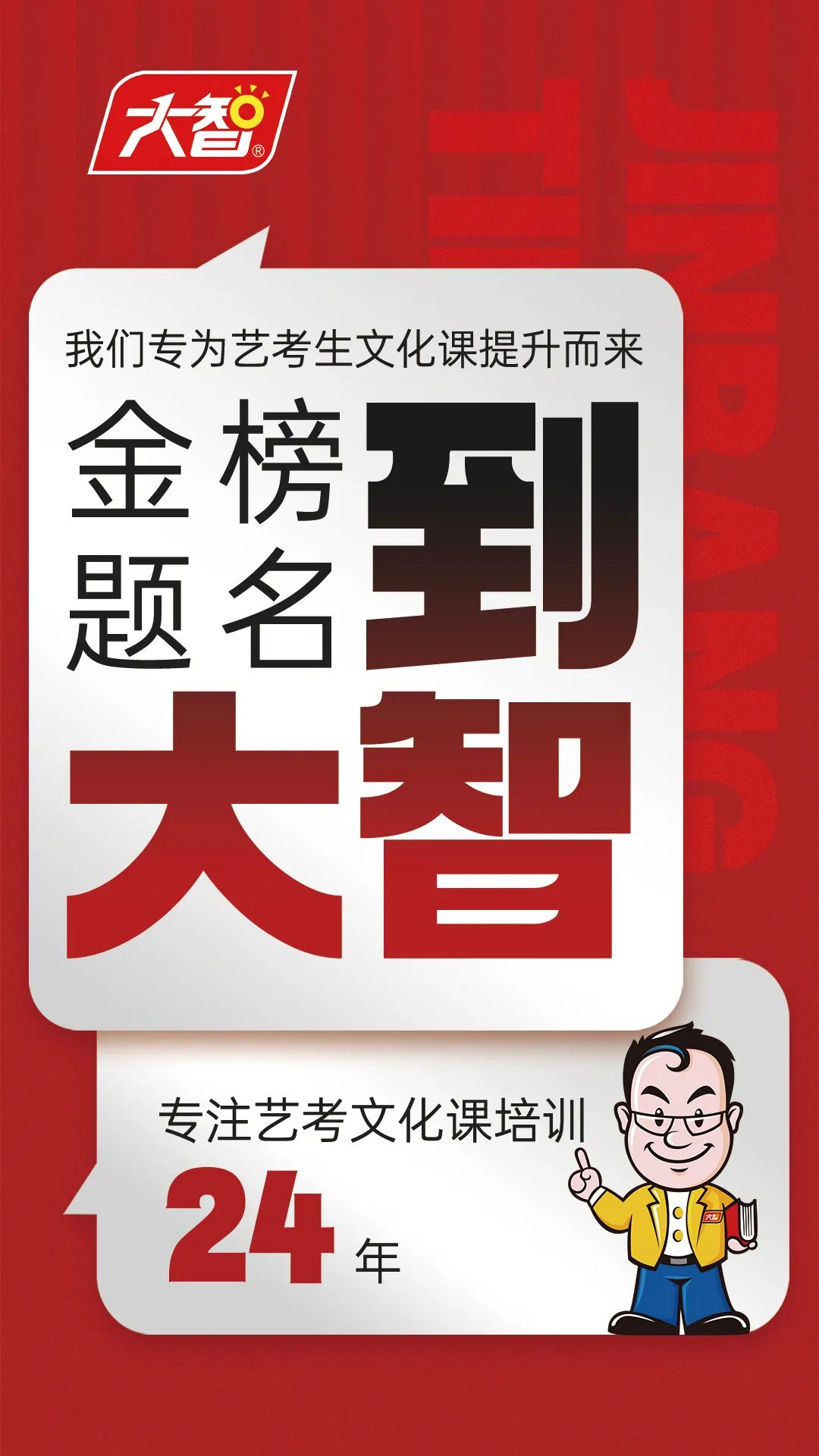 夢想啟航篇大智教育大智是運(yùn)營高考文化課、藝體生文化課、升學(xué)規(guī)劃的專業(yè)性機(jī)構(gòu)。大智始終以“為黨育人 為國育才”為己任,秉承“視學(xué)生為親人 視家...