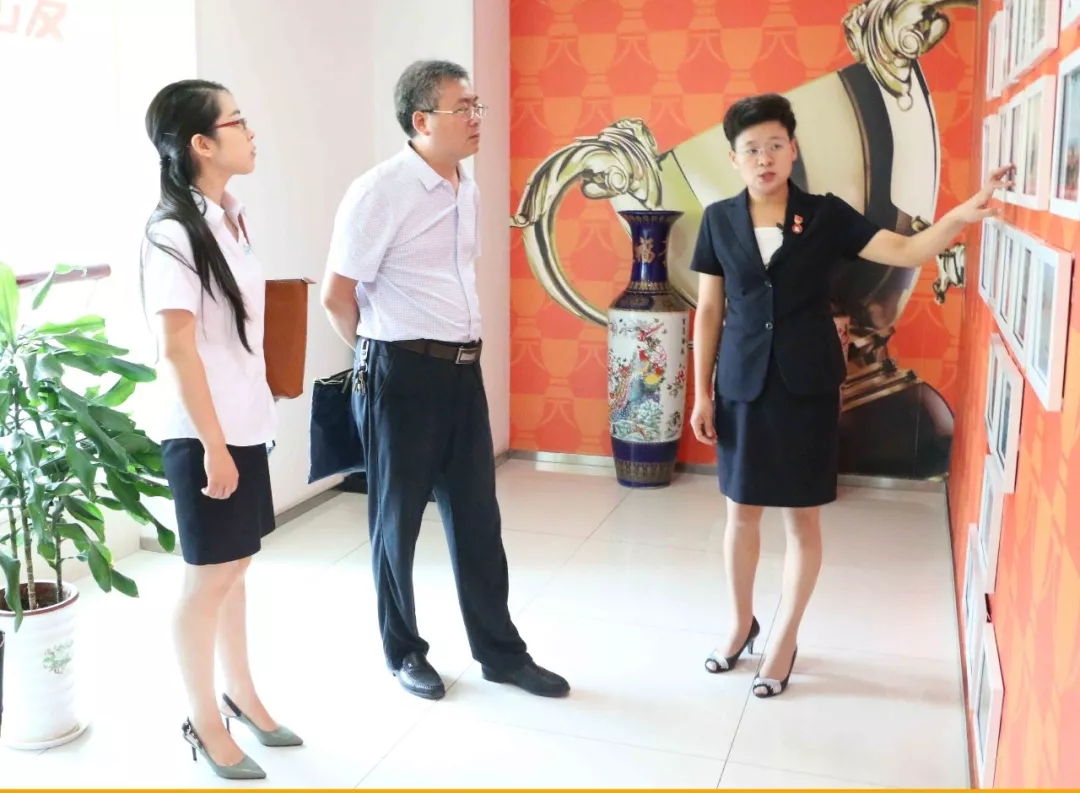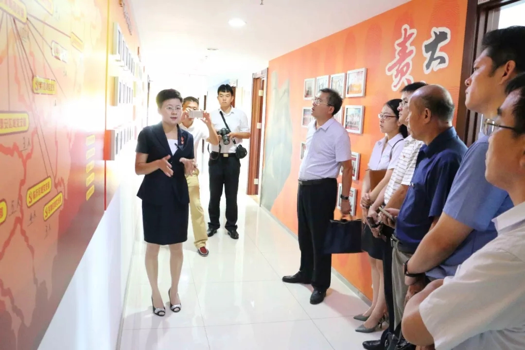 王現(xiàn)芹帶領(lǐng)考察團參觀了大智控股集團總部,重點向大家闡釋了大智“智惠黨建”系統(tǒng)、“一三九”黨建工作模式和大智“一帶一促”群團建設(shè)模式。