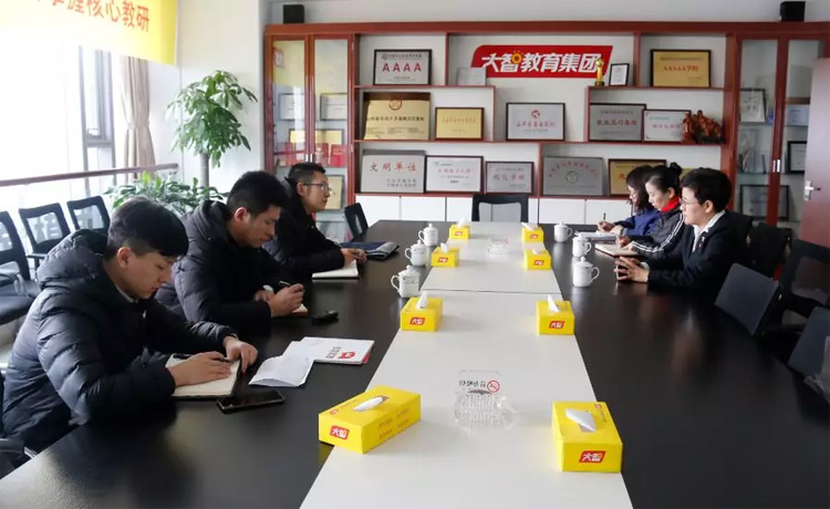 02月20日,濟(jì)南市章丘區(qū)雙山街道城東工業(yè)園黨群服務(wù)中心、龍泉國際廣場黨群服務(wù)中心一行在歷下區(qū)解放路街道歷山路社區(qū)黨委書記董繼紅、副書記楊霄霞陪同下,第二次到大智調(diào)研交流黨群工作。大智教育集團(tuán)黨委書記王現(xiàn)芹、黨委委員常廣成熱情接待。