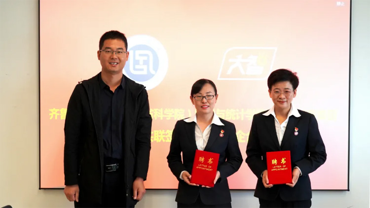 數(shù)學(xué)與統(tǒng)計(jì)學(xué)院黨總支副書記劉澤東為大智相關(guān)負(fù)責(zé)同志頒發(fā)校外輔導(dǎo)員、大學(xué)生職業(yè)發(fā)展與就業(yè)指導(dǎo)校外導(dǎo)師聘書。