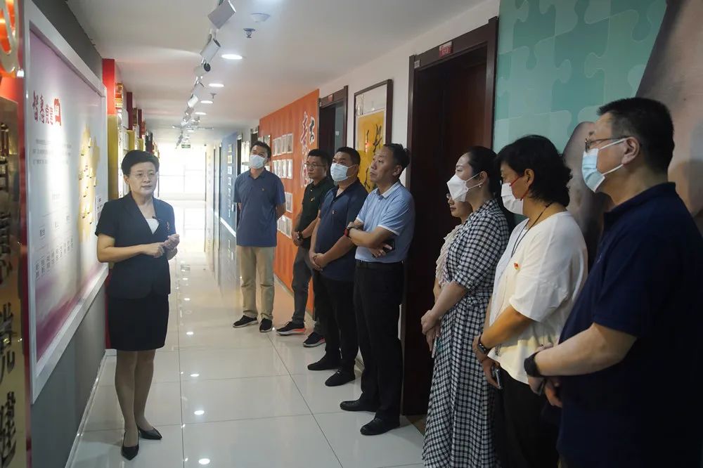 王現(xiàn)芹帶領(lǐng)大家參觀了黨建長廊,詳細(xì)介紹了大智組織架構(gòu)、企業(yè)文化等相關(guān)情況,以及“智惠黨建一三九”黨建工作模式,黨建引領(lǐng)下的“一帶一促”群團(tuán)建設(shè)理念和“智惠+”群團(tuán)建設(shè)模式。大家對大智的黨建工作給予了充分肯定和高度認(rèn)可。
