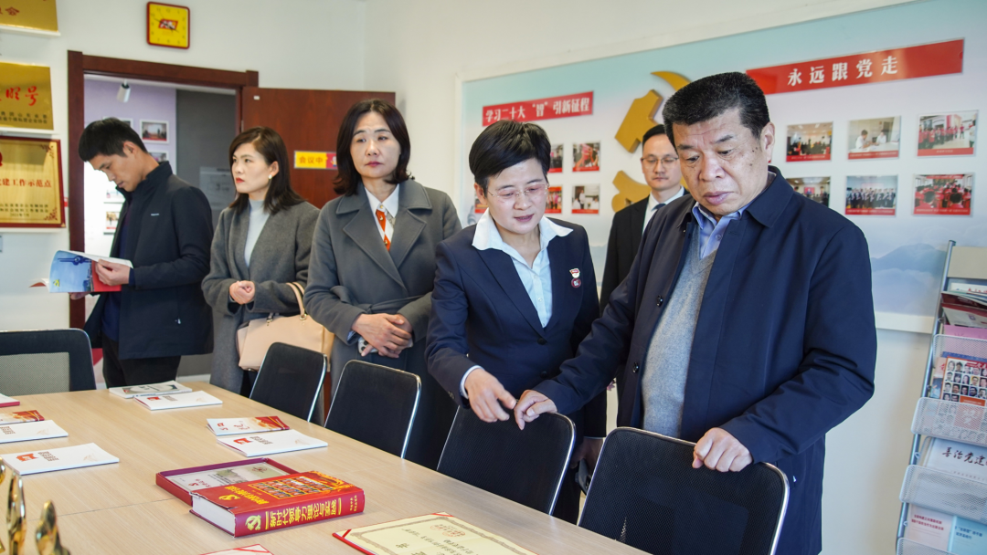 參觀黨員活動(dòng)室,翻閱查看大智黨建相關(guān)資料。