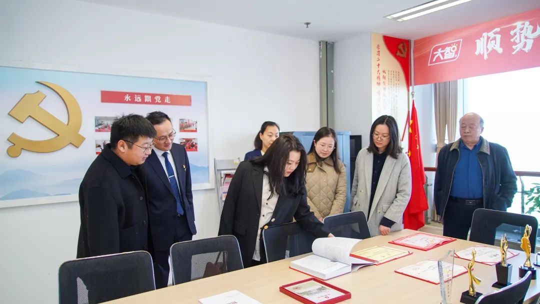 昌舉岡帶領大家參觀了黨建長廊,詳細介紹了大智黨委組織架構、企業(yè)文化等相關情況,以及“智惠黨建一三九”黨建工作模式,黨建引領下的“一帶一促”群團建設理念和“智惠+”群團建設模式。大家對大智的黨建工作給予了高度評價。