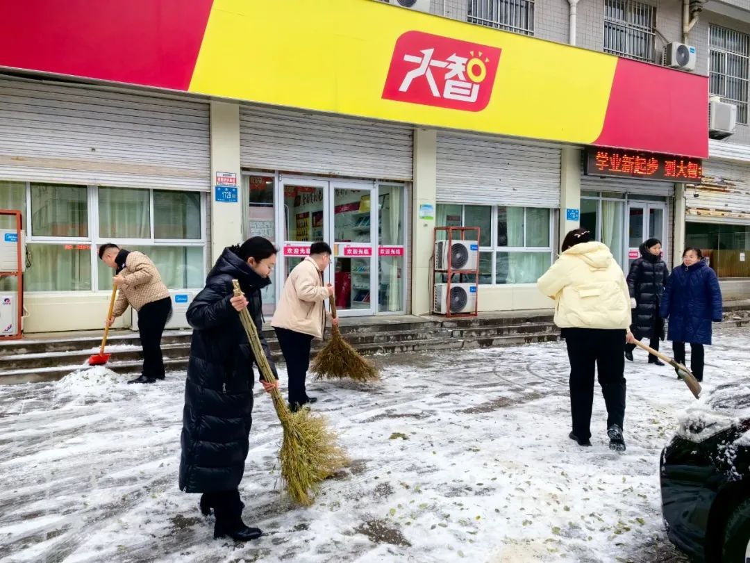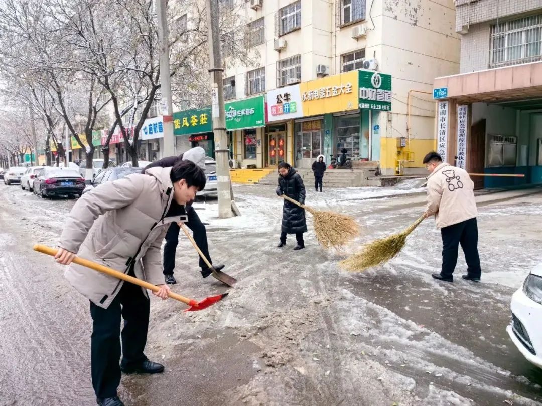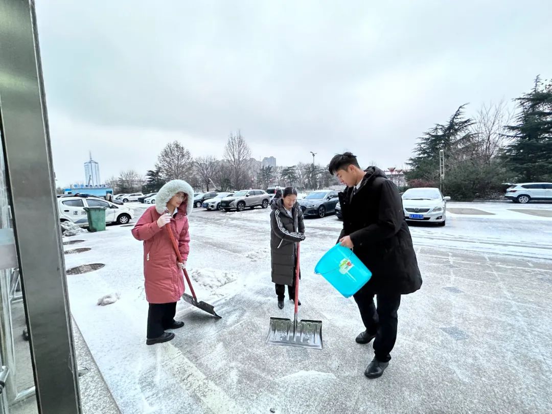 大家齊心協(xié)力,分工明確,全力清除路面積雪。忙碌的身影在冬天凜冽的寒風中構成了一道亮麗的風景線。