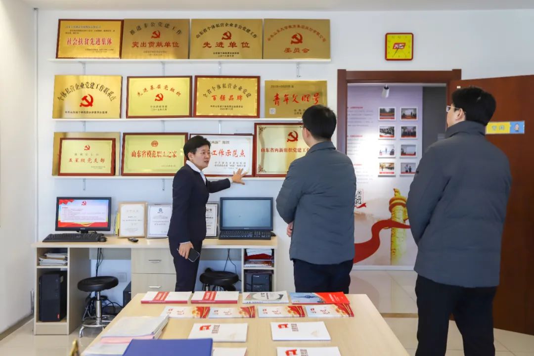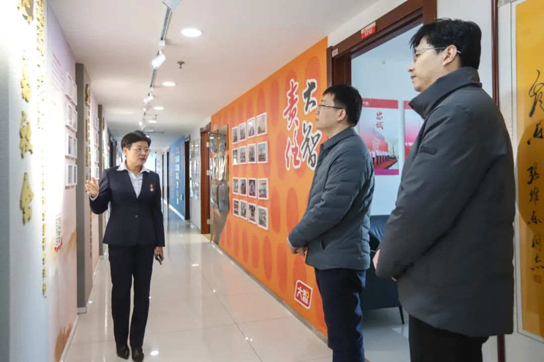 12月20日,濟南市委組織部組織一處處長林勇,三級主任科員李建波,歷下區(qū)委組織部副部長姚潤澤,區(qū)黨建服務中心副主任趙亮,解放路街道黨工委副書記、政協委員聯絡室主任程瀟霜一行到大智控股集團調研黨員發(fā)展工作。大智黨委書記王現芹熱情接待。