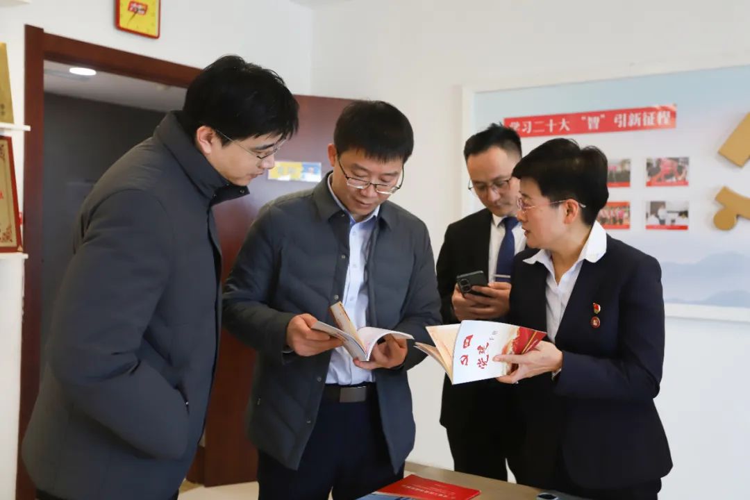 參觀黨員活動室,翻閱查看大智黨建相關資料。