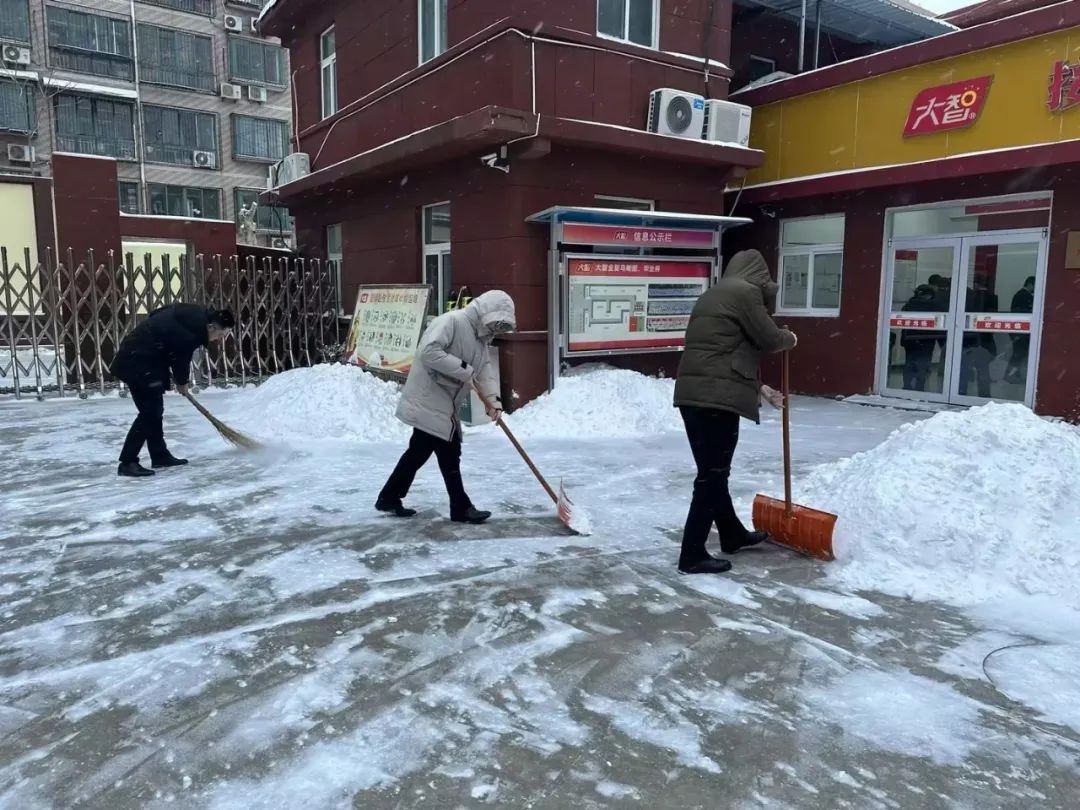 大家分區(qū)分片,奮力掃除周邊道路積雪,清掃出條條干凈、整潔的便民之路,為大家的安全出行提供保障。