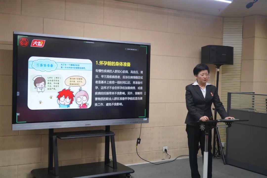 課堂上,大智教育集團黨委書記、婦聯(lián)主席王現(xiàn)芹從懷孕前的準備、時間計劃階段、孕前檢查項目三個方面進行了詳細講解,同時結(jié)合自身經(jīng)驗及身邊案例為家人們答疑解惑。