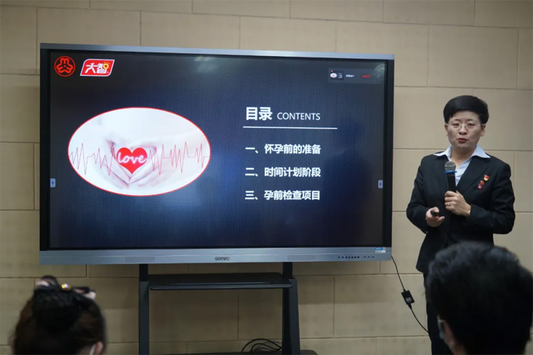 課堂上,孕前指導(dǎo)學(xué)校的組織者——大智控股集團(tuán)黨委書記、婦聯(lián)主席王現(xiàn)芹從“懷孕前的準(zhǔn)備”“時(shí)間計(jì)劃階段”“孕前檢查項(xiàng)目”三個(gè)方面為大家?guī)砹嗽敿?xì)的孕前知識解讀,同時(shí)結(jié)合自身經(jīng)歷,現(xiàn)場為員工們進(jìn)行答疑解惑。