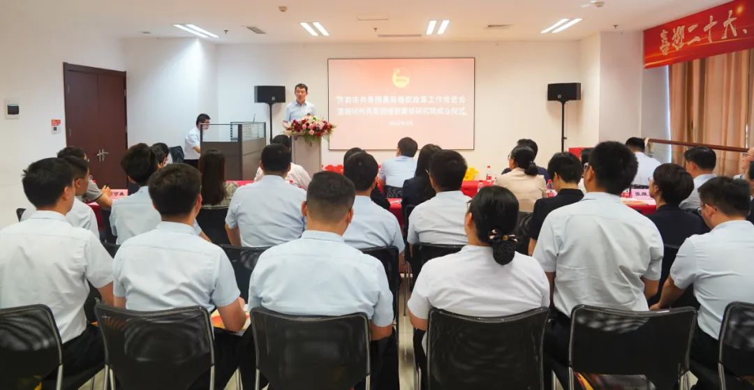 團市委書記張熙講話。張熙書記指出,在全團上下學(xué)習(xí)貫徹習(xí)近平總書記在慶祝中國共產(chǎn)主義青年團成立一百周年大會上重要講話之際,發(fā)起成立濟南市新時代共青團組織建設(shè)研究院正當其時、大有可為。研究院成立是做好黨建帶團建、推動縣域共青團改革、建設(shè)青年友好型城市的需要。研究院要重點解決好團組織發(fā)揮作用、整合力量、規(guī)范工作3方面問題,在理論學(xué)習(xí)宣講、服務(wù)“兩新”團建、調(diào)研梳理問題3個層面發(fā)揮作用。對于今后工作,張熙書記要求研究院制定明確目標,建立科學(xué)體系,與縣域共青團組織改革深度融合。