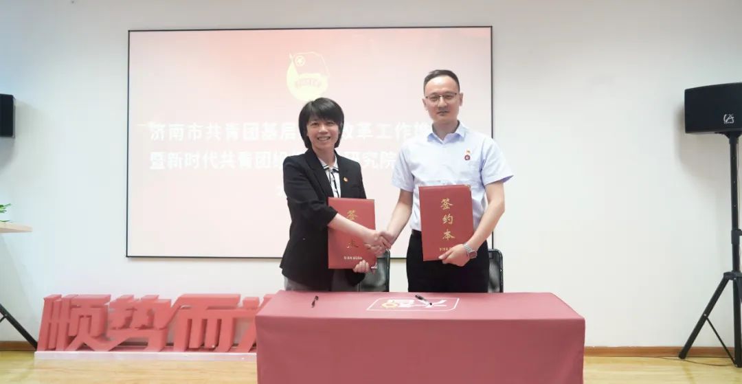 歷下區(qū)團委書記羅茜與研究院院長昌舉岡共同簽訂《合作協(xié)議》。