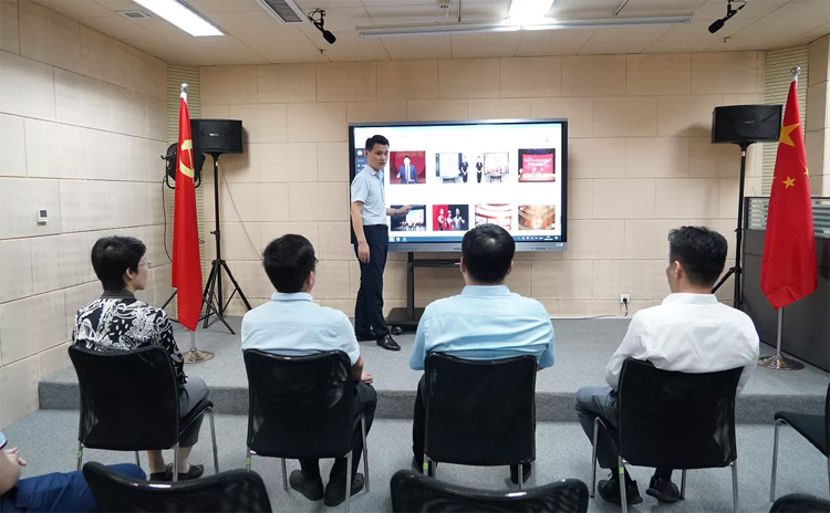 隨后,常廣成通過視頻、圖片、文字資料,對于大智黨團工作進行了詳細展示。