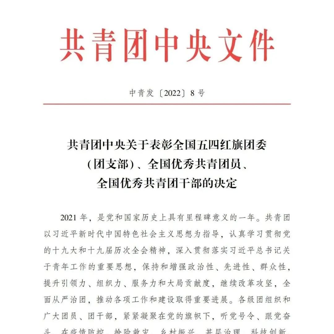 2022年是中國(guó)共青團(tuán)成立100周年。近日,共青團(tuán)中央發(fā)布《共青團(tuán)中央關(guān)于表彰全國(guó)五四紅旗團(tuán)委(團(tuán)支部)、全國(guó)優(yōu)秀共青團(tuán)員、全國(guó)優(yōu)秀共青團(tuán)干...
