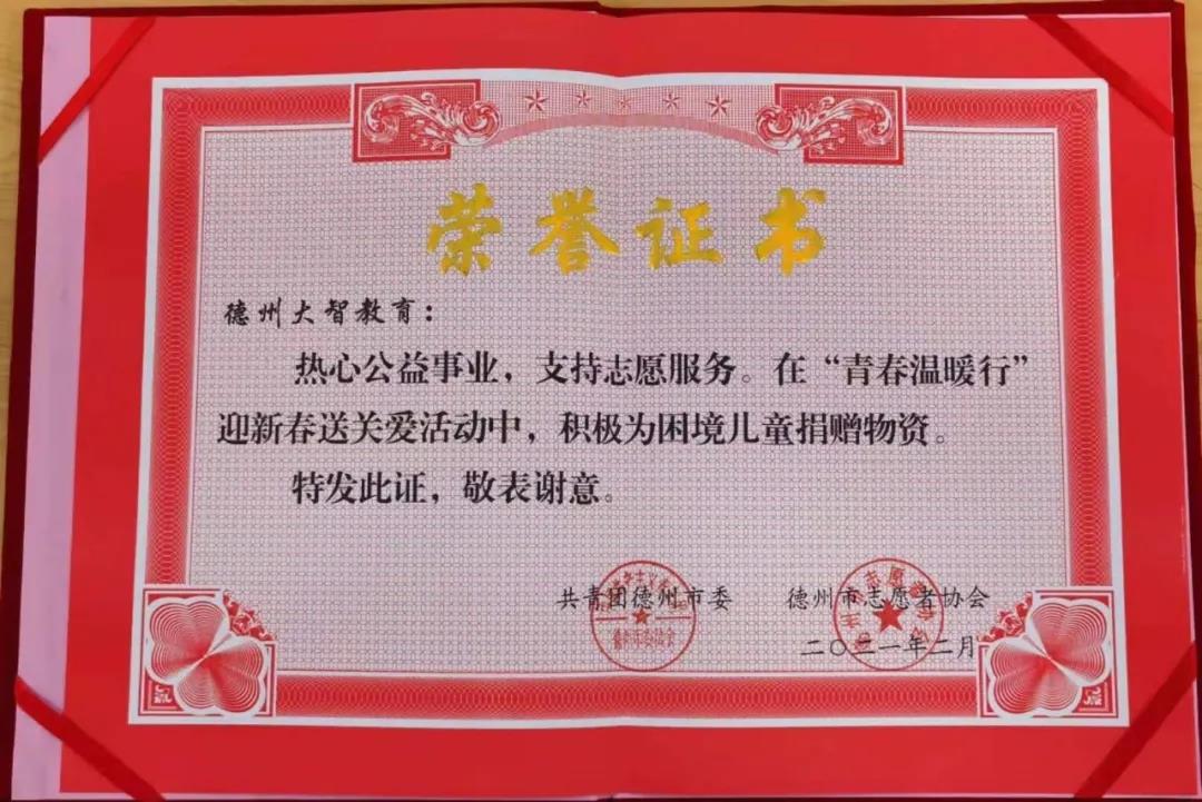 大智教育集團各區(qū)域積極開展智學智愛——"牽手關愛"千人志愿服務大行動,投身志愿服務事業(yè)。最近,大智臨沂區(qū)域以及德州區(qū)域在志愿服務工作上的付出也得到了上級團組織的高度認可。